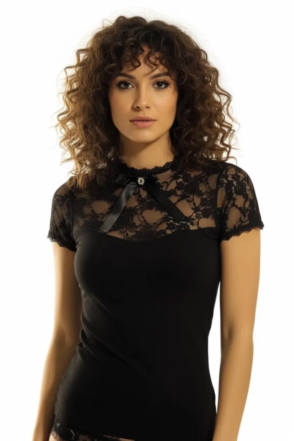 Bayan Kısa Kol Dantelli Elastane 8015