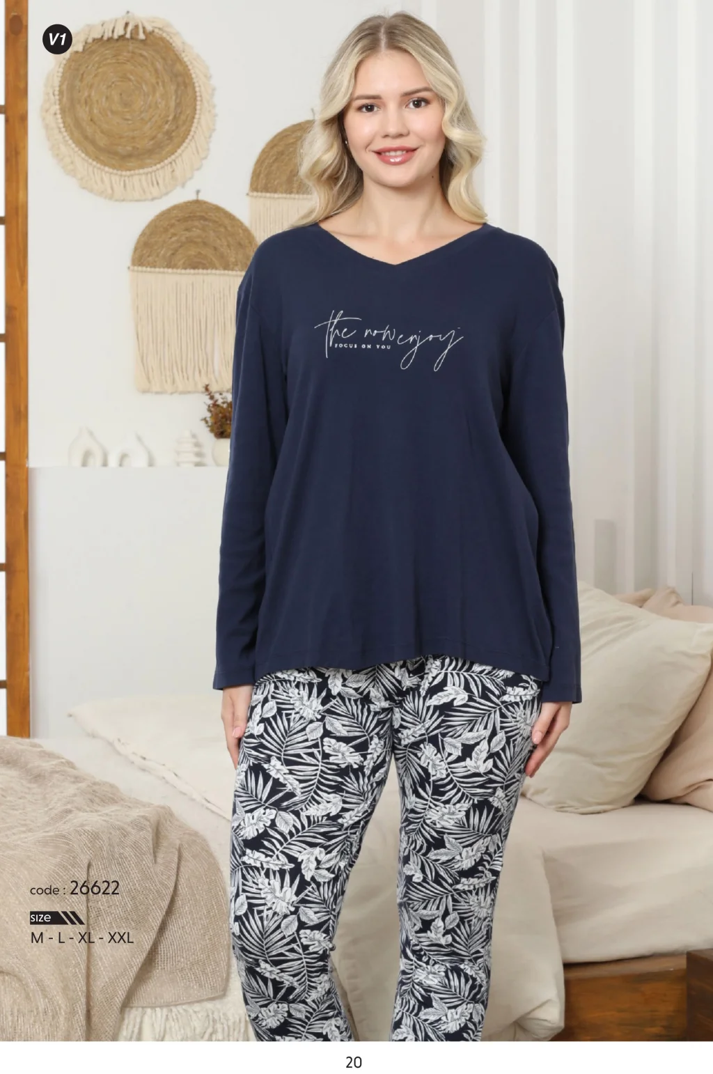 • 26622-Limissi Kadın V Yaka Pijama Takımı, rahatlık ve şıklığı bir arada sunar. Güne keyifli bir başlangıç yapmak için idealdir.