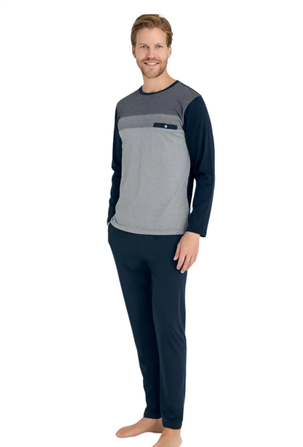 Kly'in rahatlık ve şıklığı bir arada sunan O Yaka Flato Cepli Pijama Takımı, gecelerinize konfor katıyor.