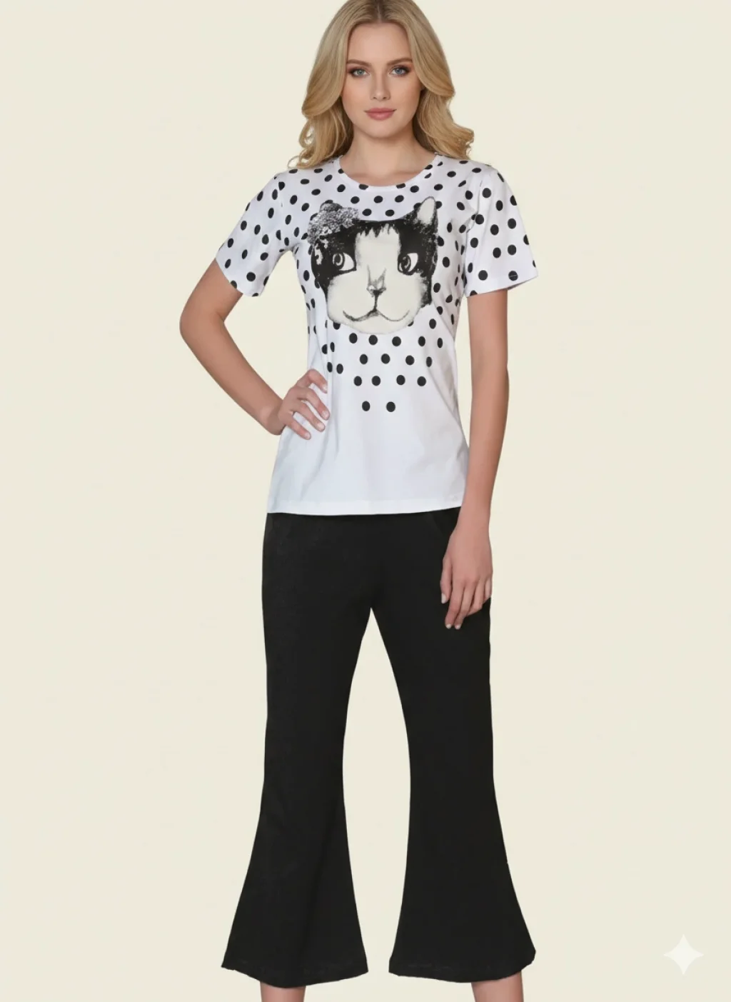 2465 CLEAR CAT PRINTED WOMEN'S CAPRI SET