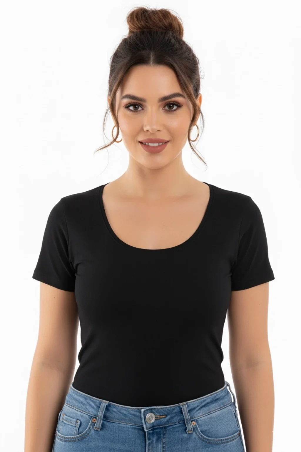 Kadın Kısa Kol Yazlık Dar Basic Siyah Crop Tişört