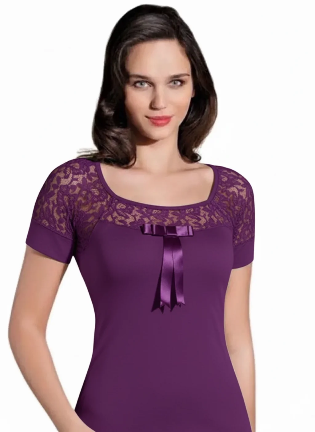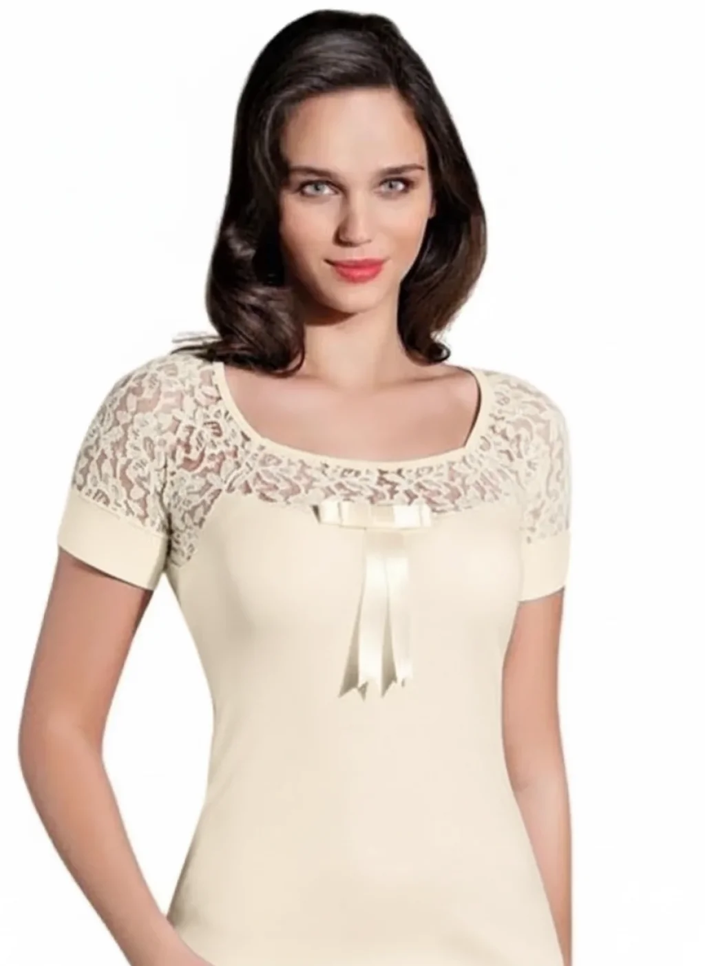 Clear Women's Lace Short Sleeve Elastane Blouse 2144
