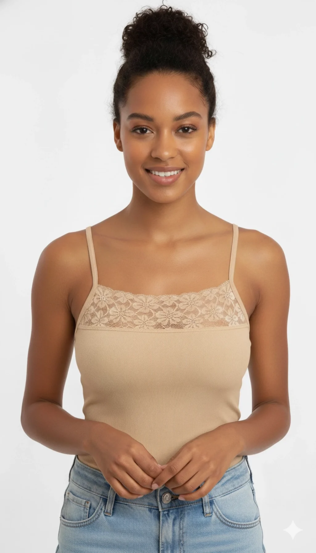 Women's Lace Embellished Half Sleeve Tank Top B636
