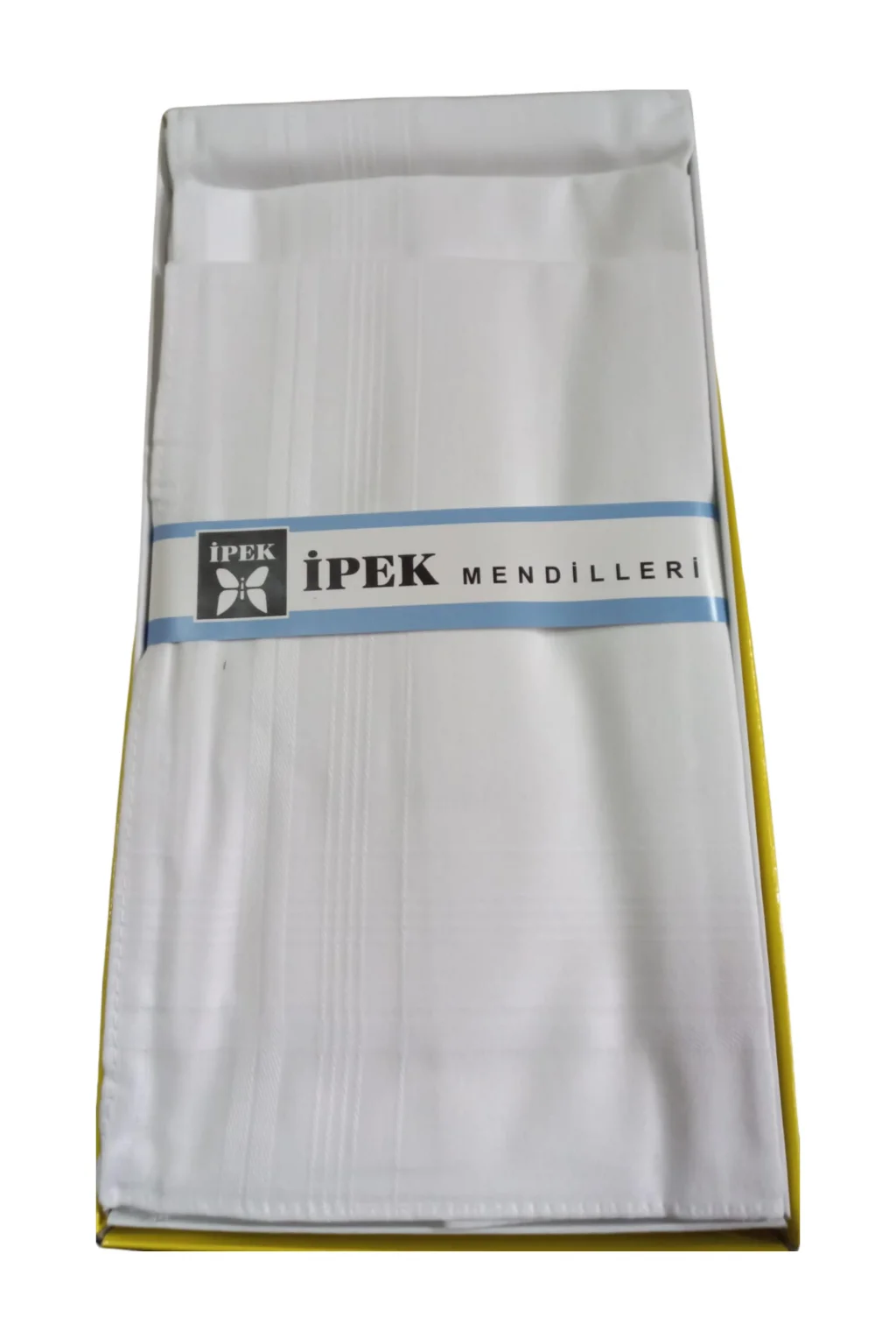 • İpek Erkek Beyaz Kutulu Mendil 12 Adet 42x42 cm: Şıklığı ve kullanışı bir arada sunan kaliteli mendil seti.
