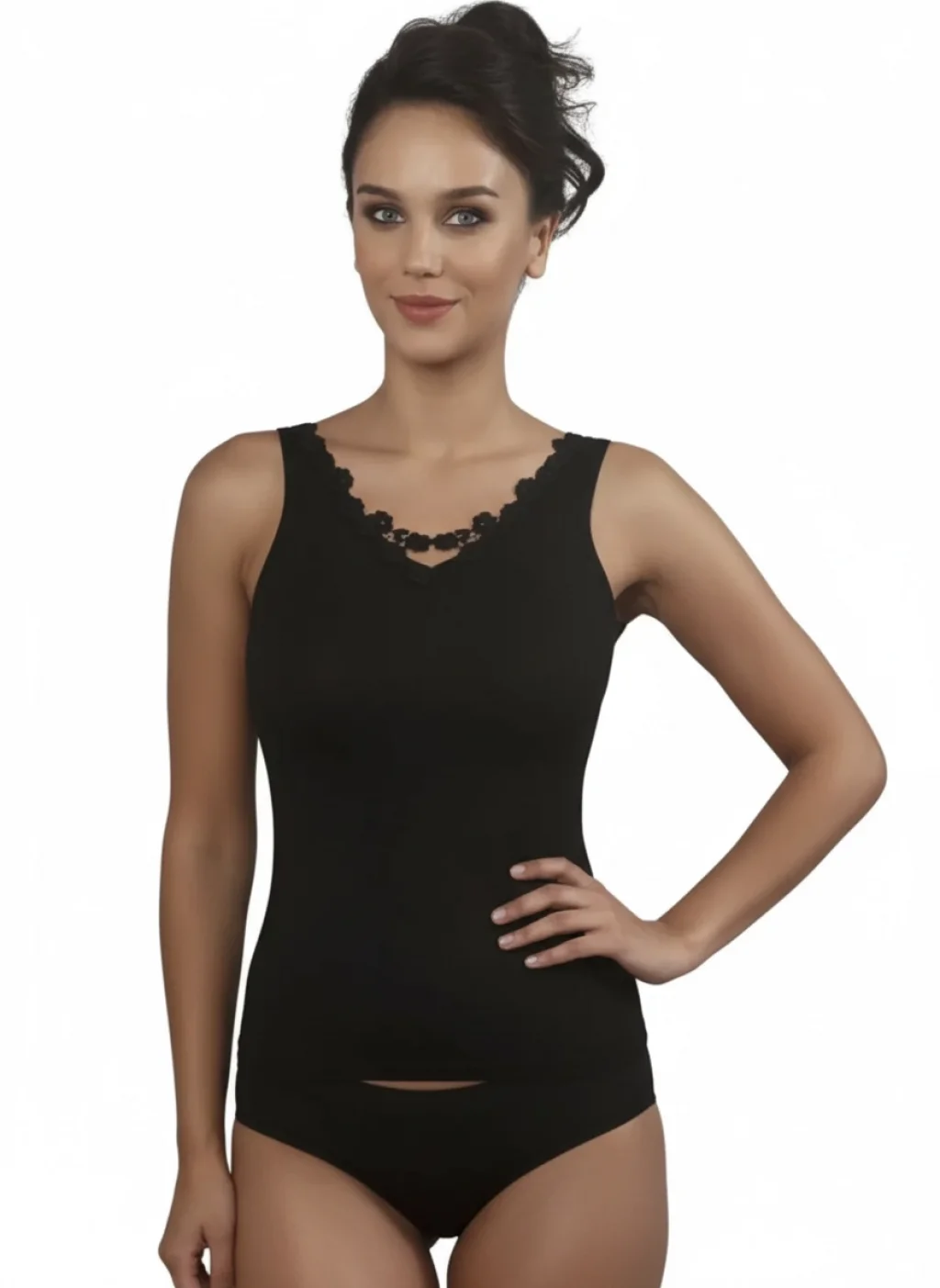 Şahinler Kalın Askılı Dantelli Siyah Atlet