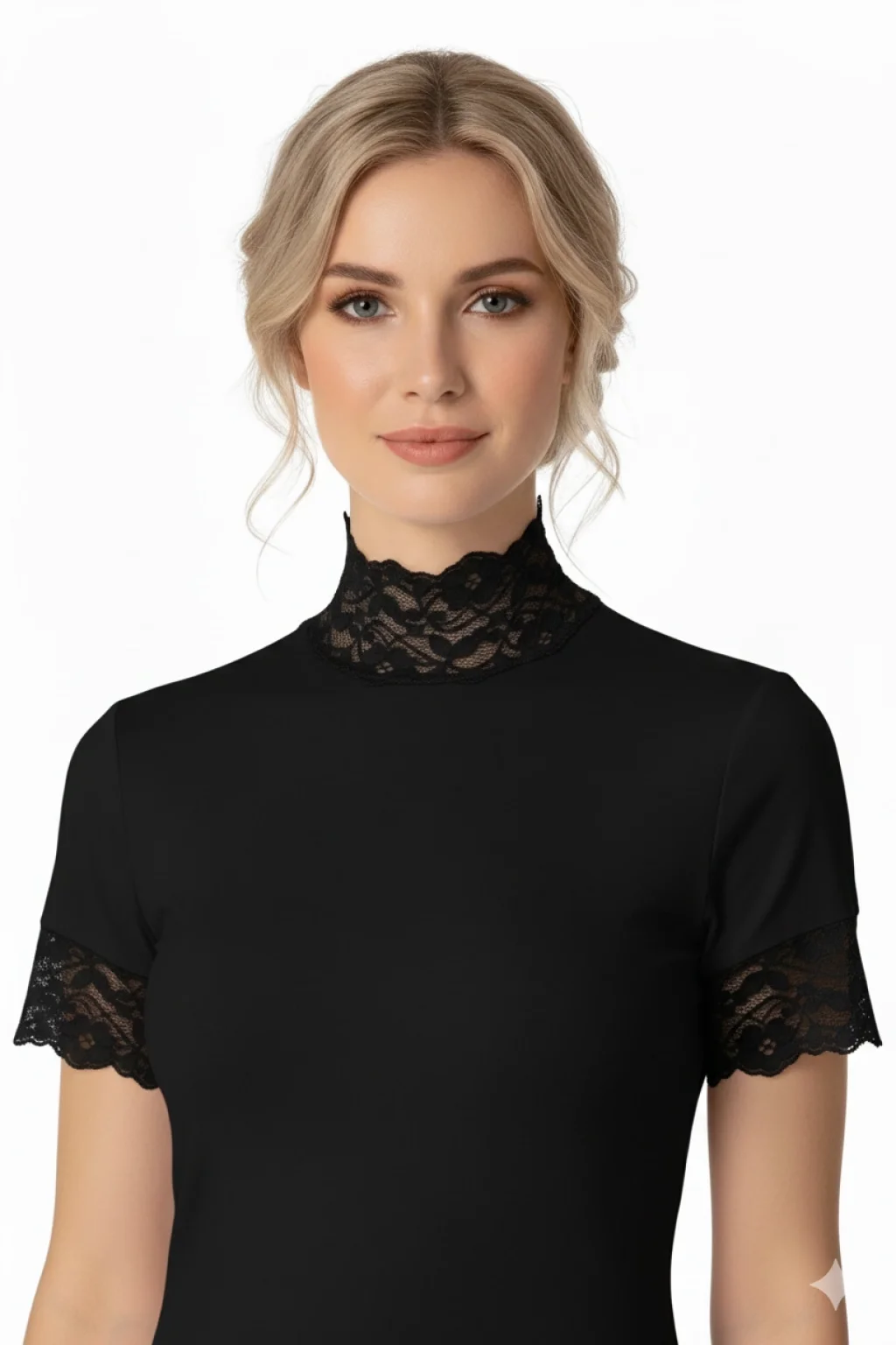 Şahinler Bayan Dantelli Yarım Kollu Bluz B628