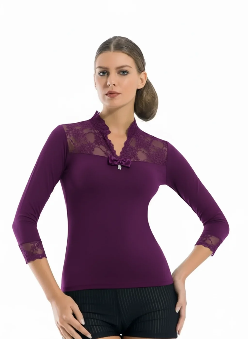 Wide Lace Embroidered Long Sleeve Elastane Blouse 2176