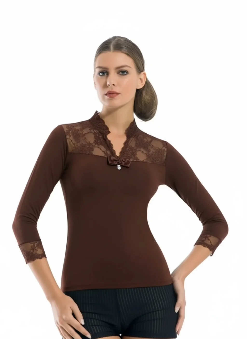 Şahinler Bayan Dantelli Yarım Kollu Bluz B628