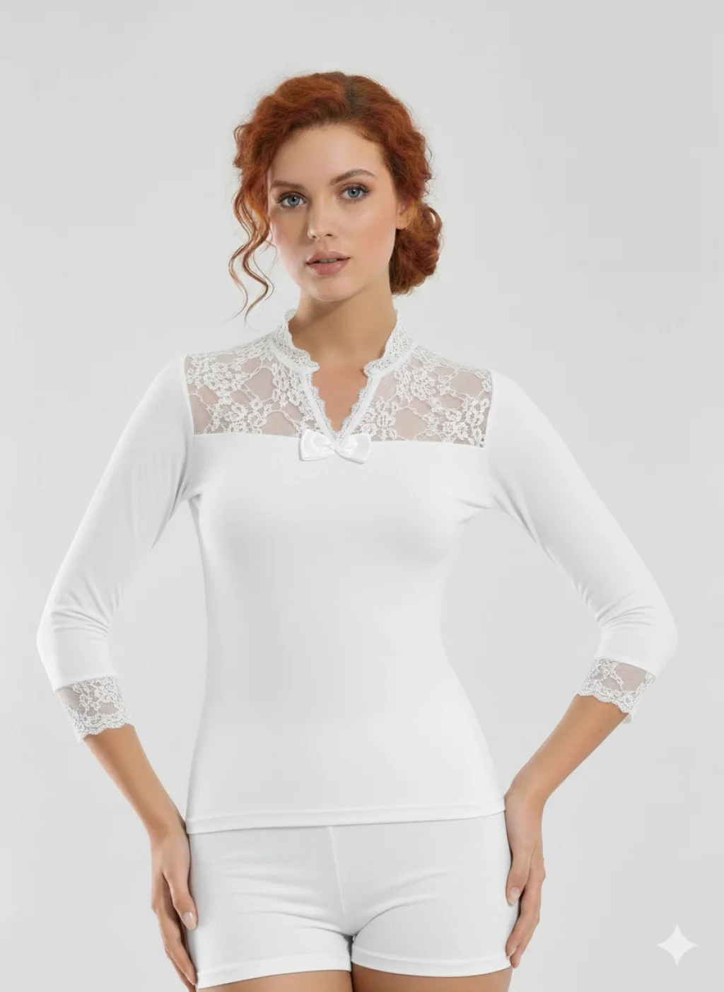 BERRAK markasının şıklığı ve zarafeti bir araya getirdiği Geniş Dantelli Patlı Uzun Kollu Elestan Bluz 2176, kadınların favorisi olmaya aday. Bu bluzun öne çıkan özellikleri şunlardır: