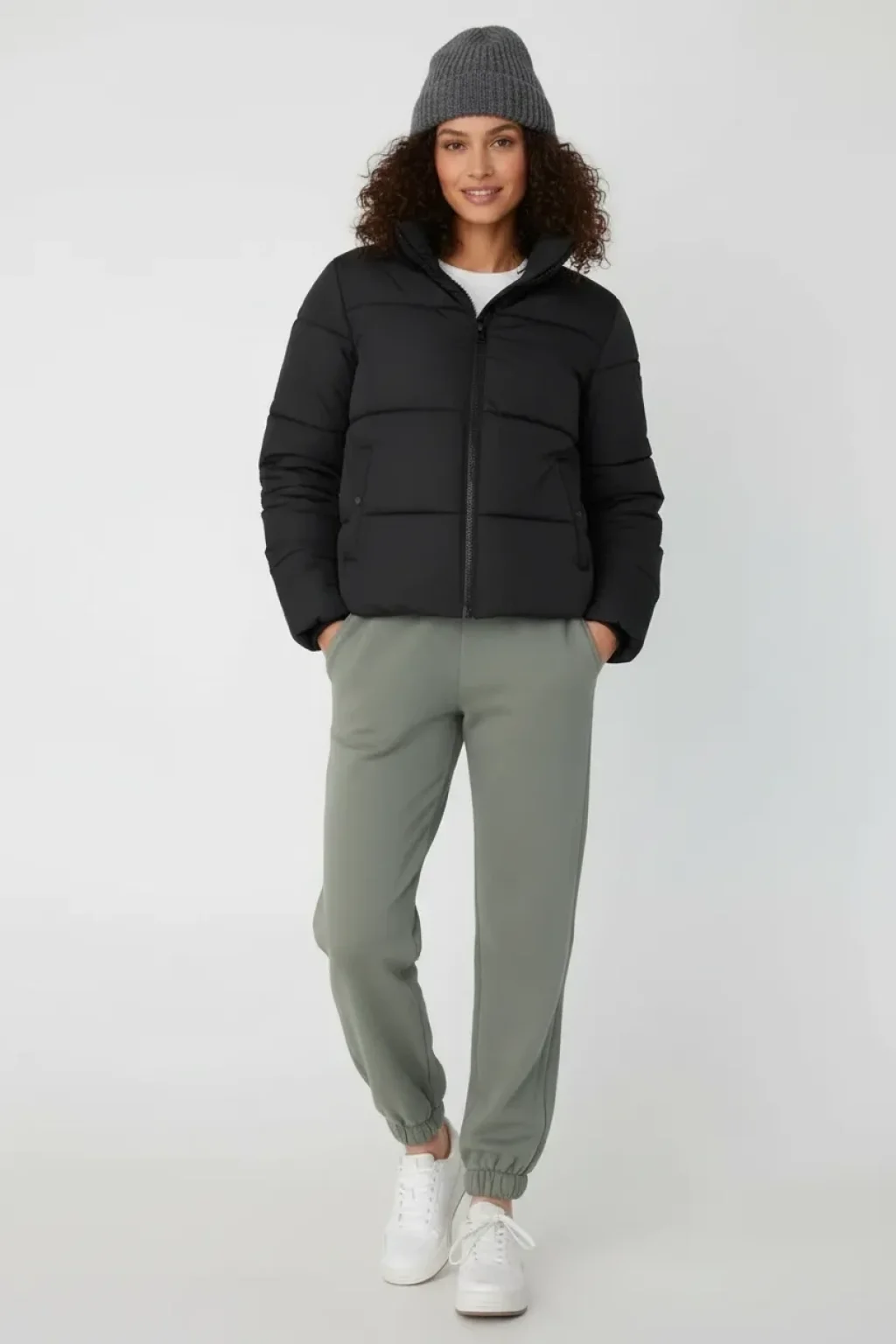 Jogger 3 İplik Şardonlu Cepli Tek Alt Siyah Siyah Sütlü Kahve