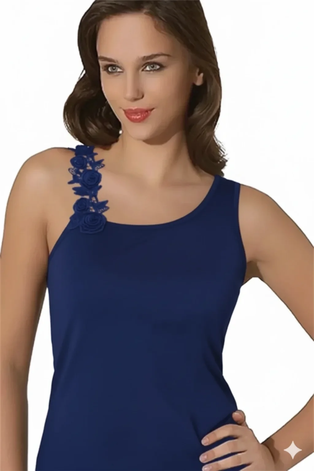 Kadın Dantelli Taşlı Yarım Kollu Atlet B636