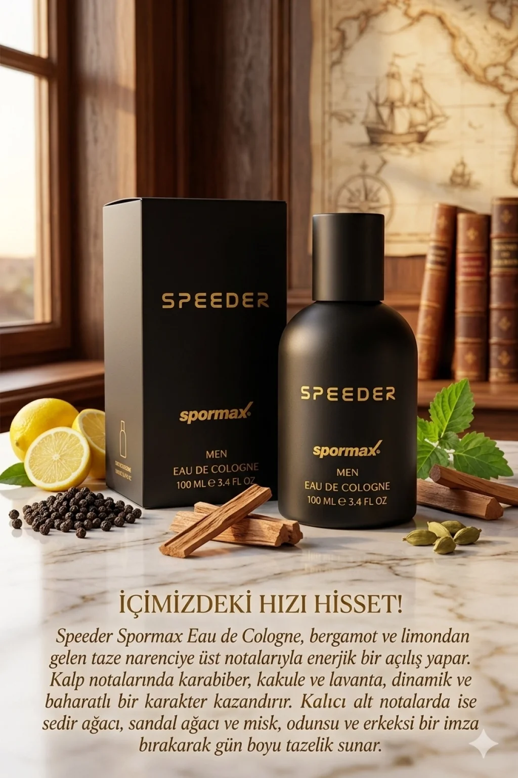 Spormax Speeder EDC Erkek Parfümü, enerjik ve çarpıcı bir etki bırakarak günlük şıklığınızı tamamlıyor. Bu özel koku, taze ve maskülen notalarıyla öne çıkıyor. Dayanıklı ve etkileyici bir formülü olan bu erkek parfümü, Spormax kalitesiyle öne çıkıyor. Spormax Speeder ile kendinizi enerjik ve özgüven dolu hissedin. Bu 100 ml'lik şişe, günlük kullanımınız için ideal bir seçenek sunuyor. Spormax Speeder EDC Erkek Parfümü ile ferahlatıcı bir deneyime adım atın.
