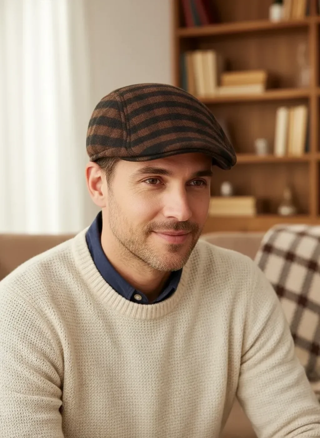 yoncatoptan Kış ve Sonbahar için Desenli Kahve Renk Kasket Şapka Esnek ve Rahat Kullanım