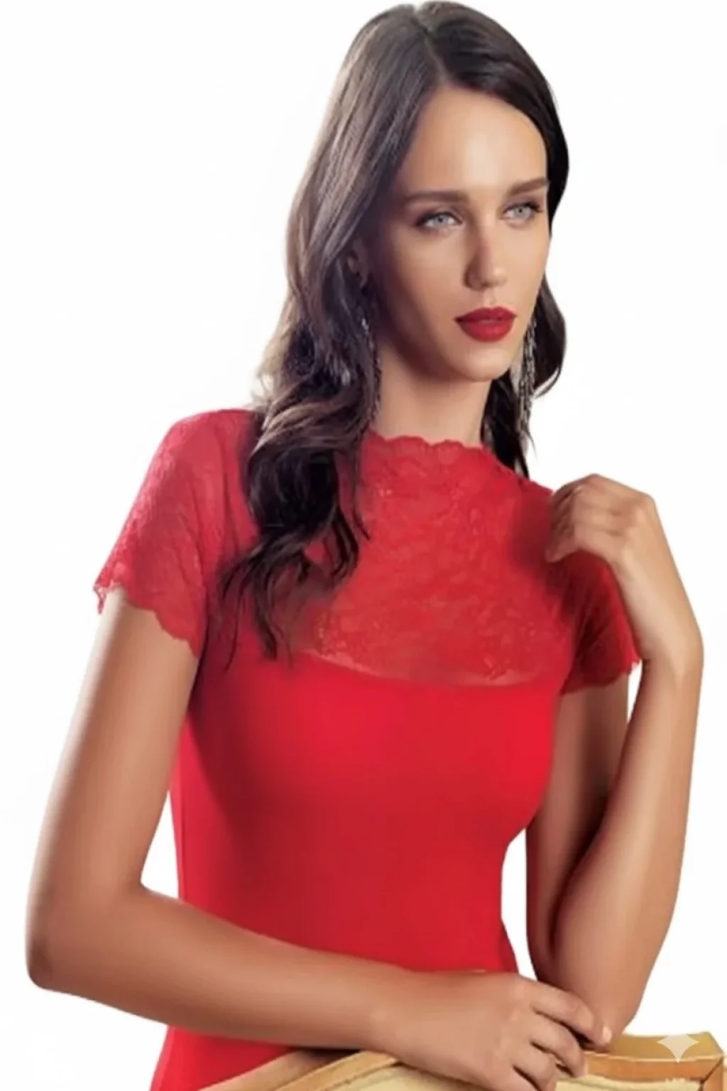 Kadın Dantelli Taşlı Yarım Kollu Atlet B636