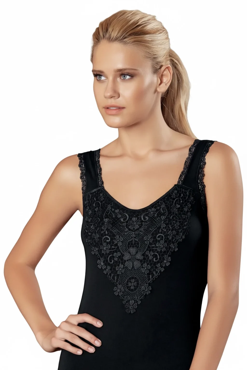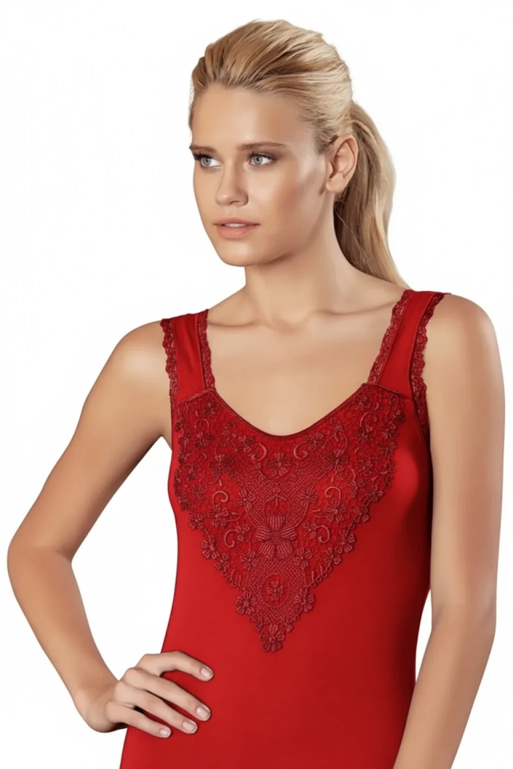 Şahinler Güpürlü Likralı Atlet B153, Yoncatoptan markasının özenle tasarladığı bir iç giyim ürünüdür. Kadınların rahatlıkla tercih edebileceği bu atlet, hem şık hem de konforlu bir kullanım sunar.